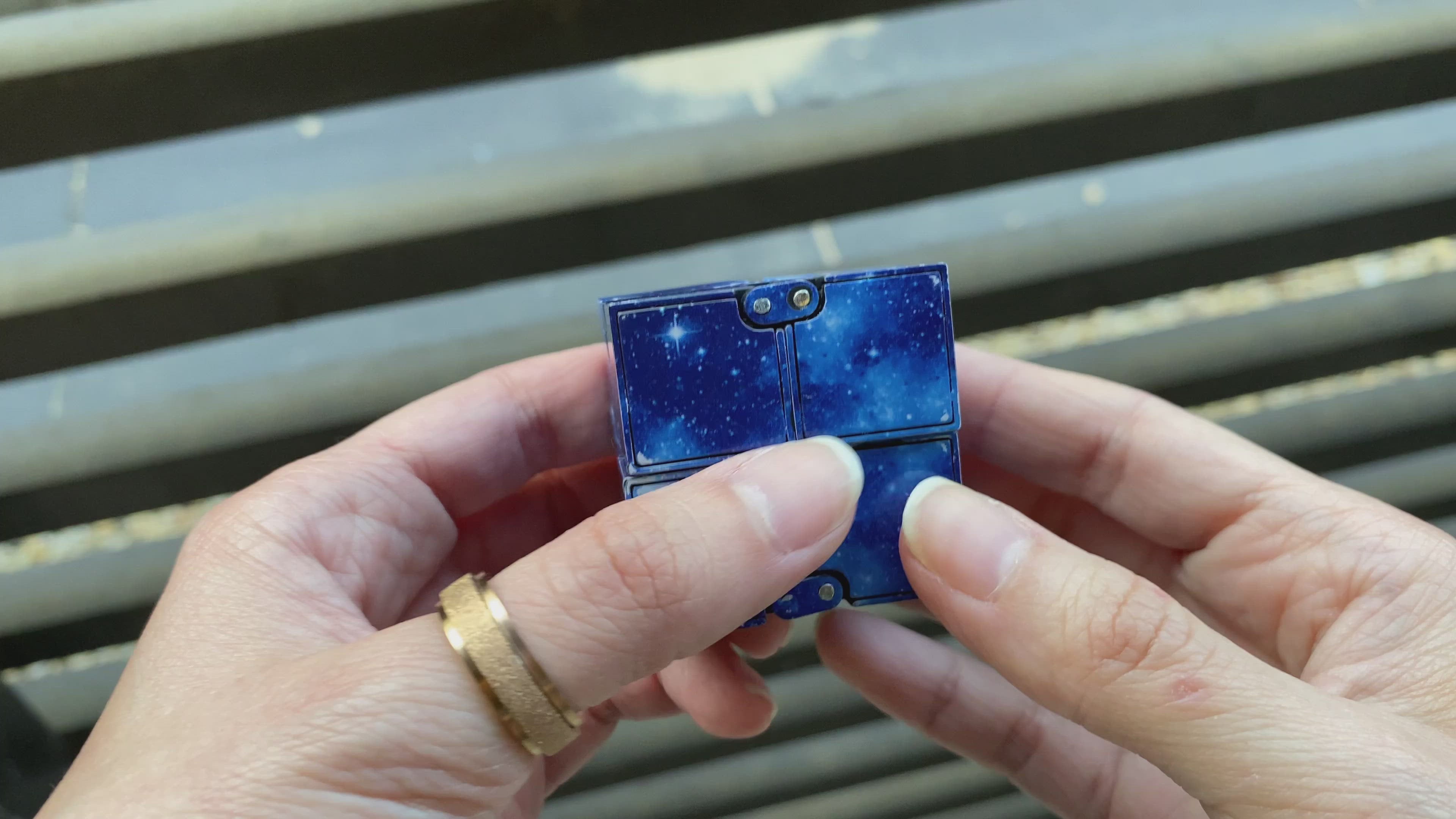 The cube folds and unfolds in different directions, allowing you to stim with both hands. It's easy to use with just one hand too!