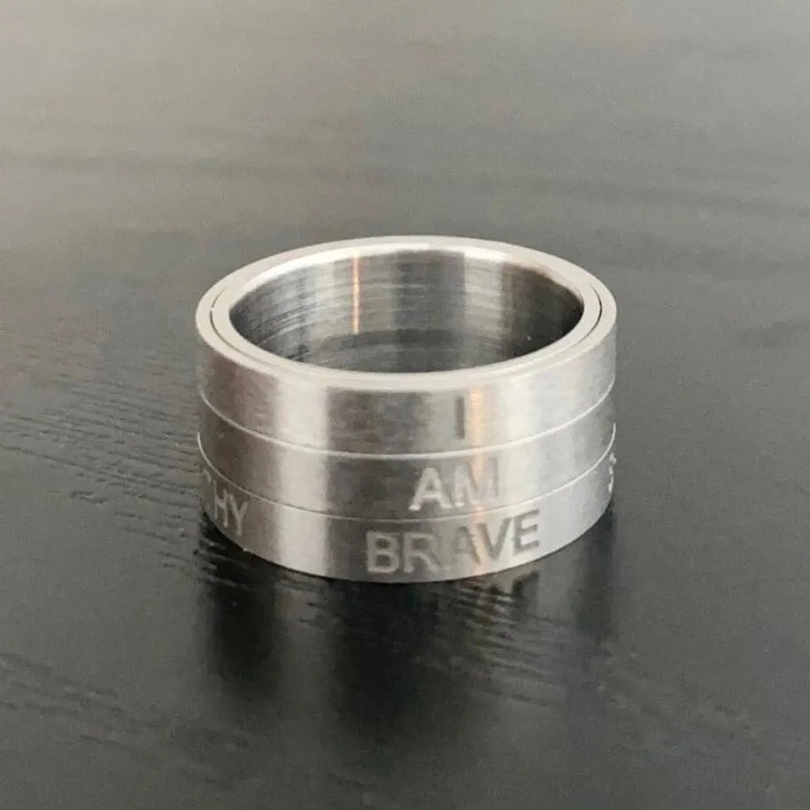 With personal 'I am' affirmations engraved on all 3 layers, this stainless steel ring serves as a daily reminder that you are strong, enough, brave, and worthy.