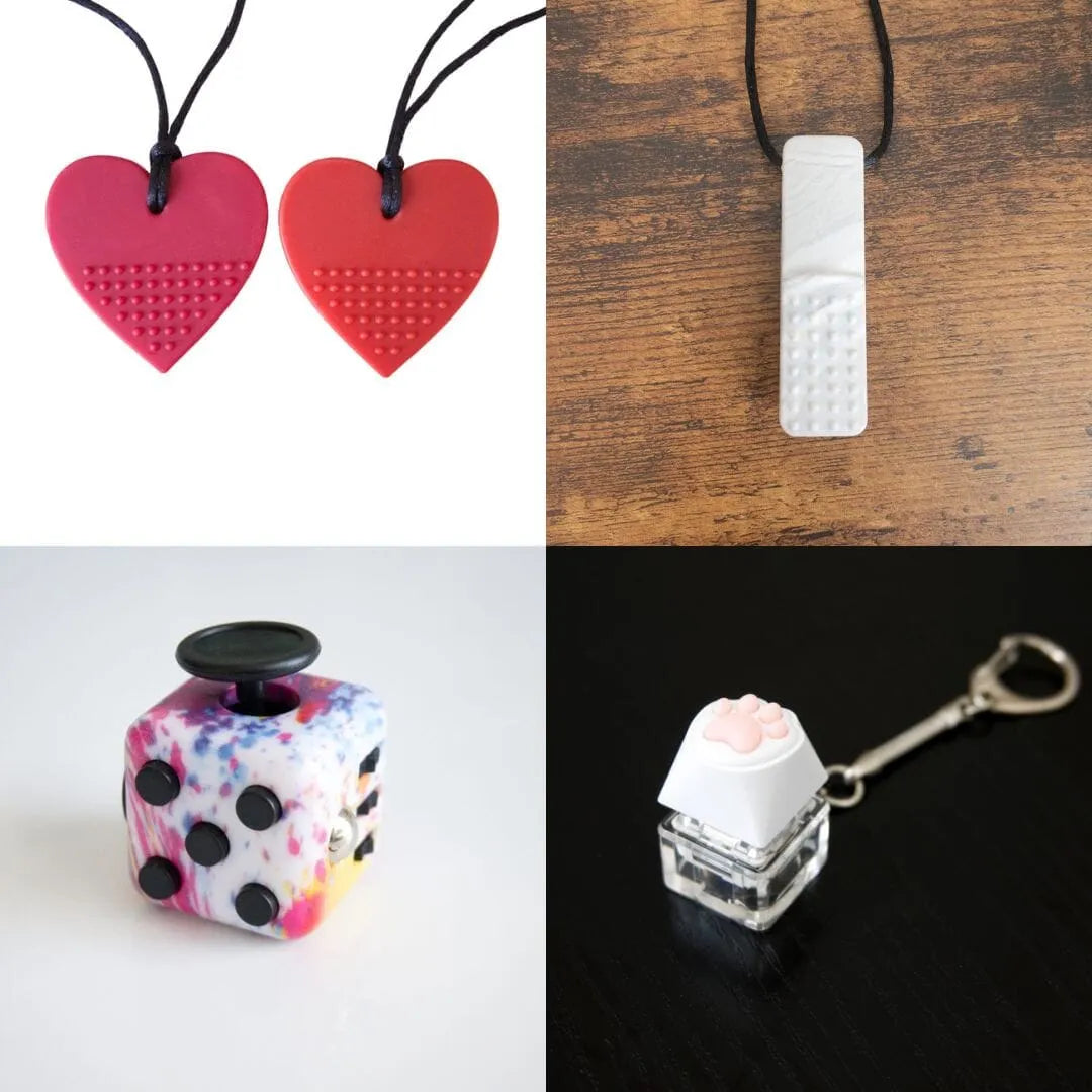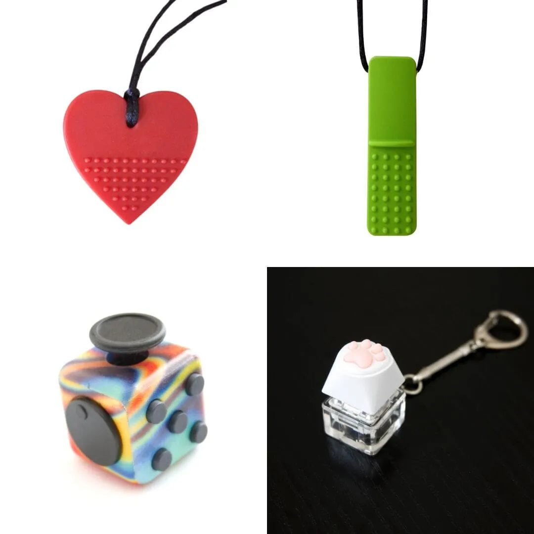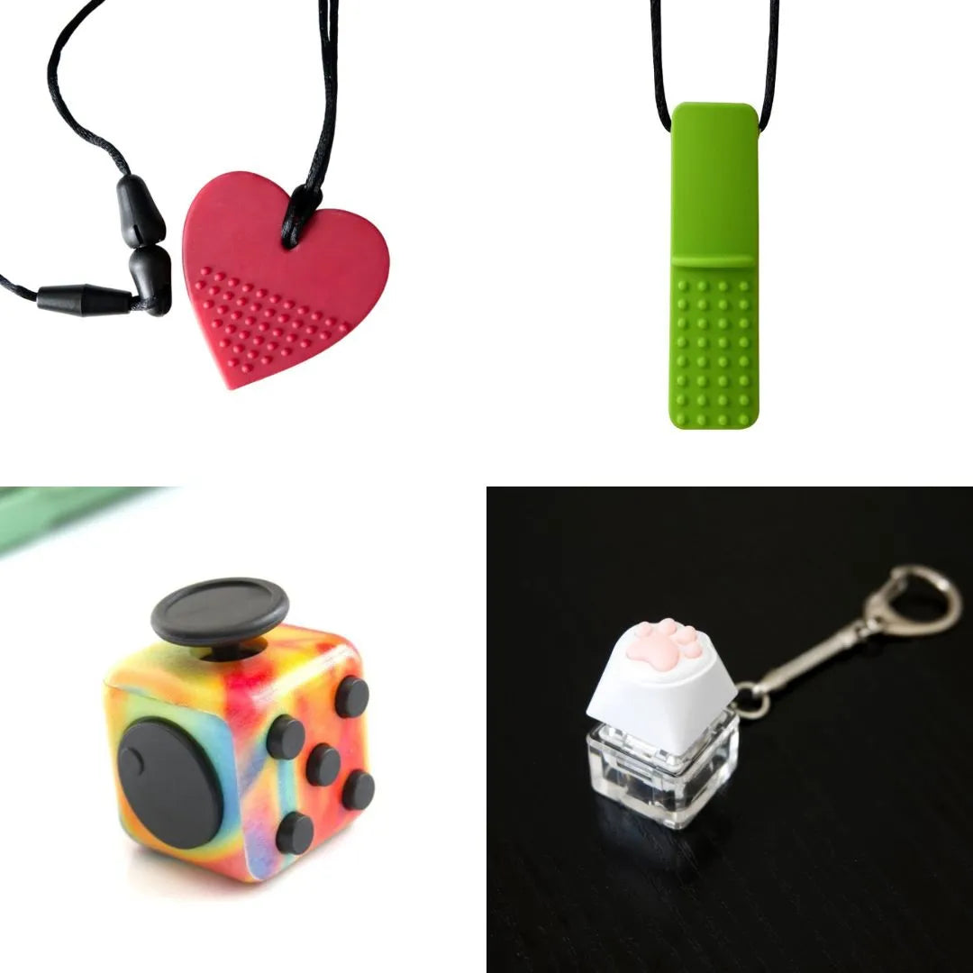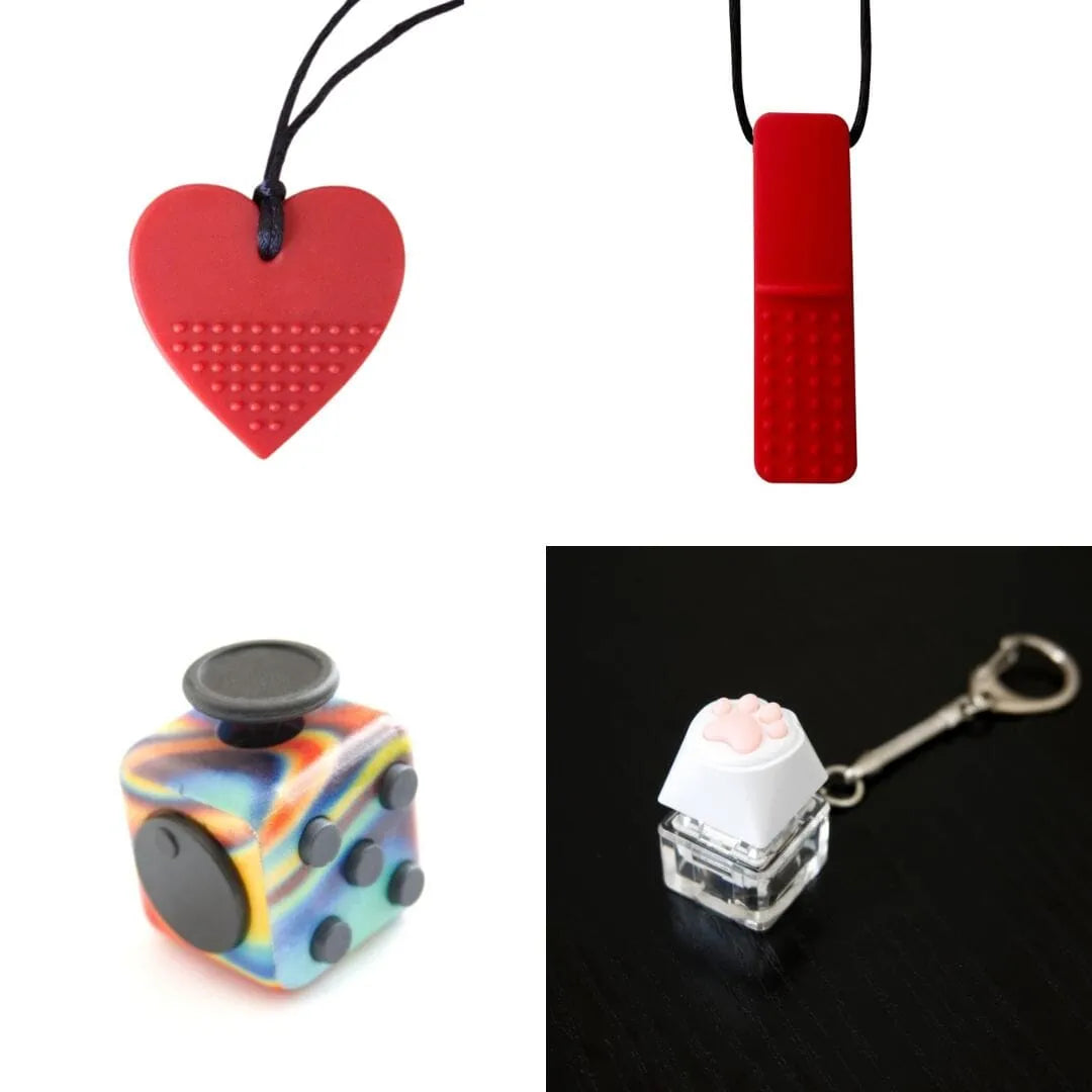 It also features the Push Button Fidget Cube and Paw Keyboard Fidget Keychain for added fidgeting fun.
