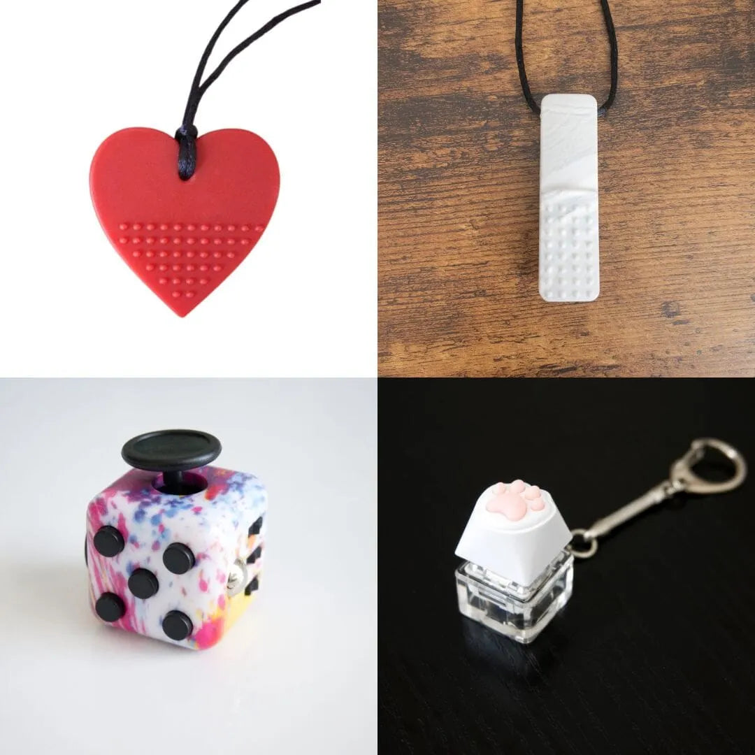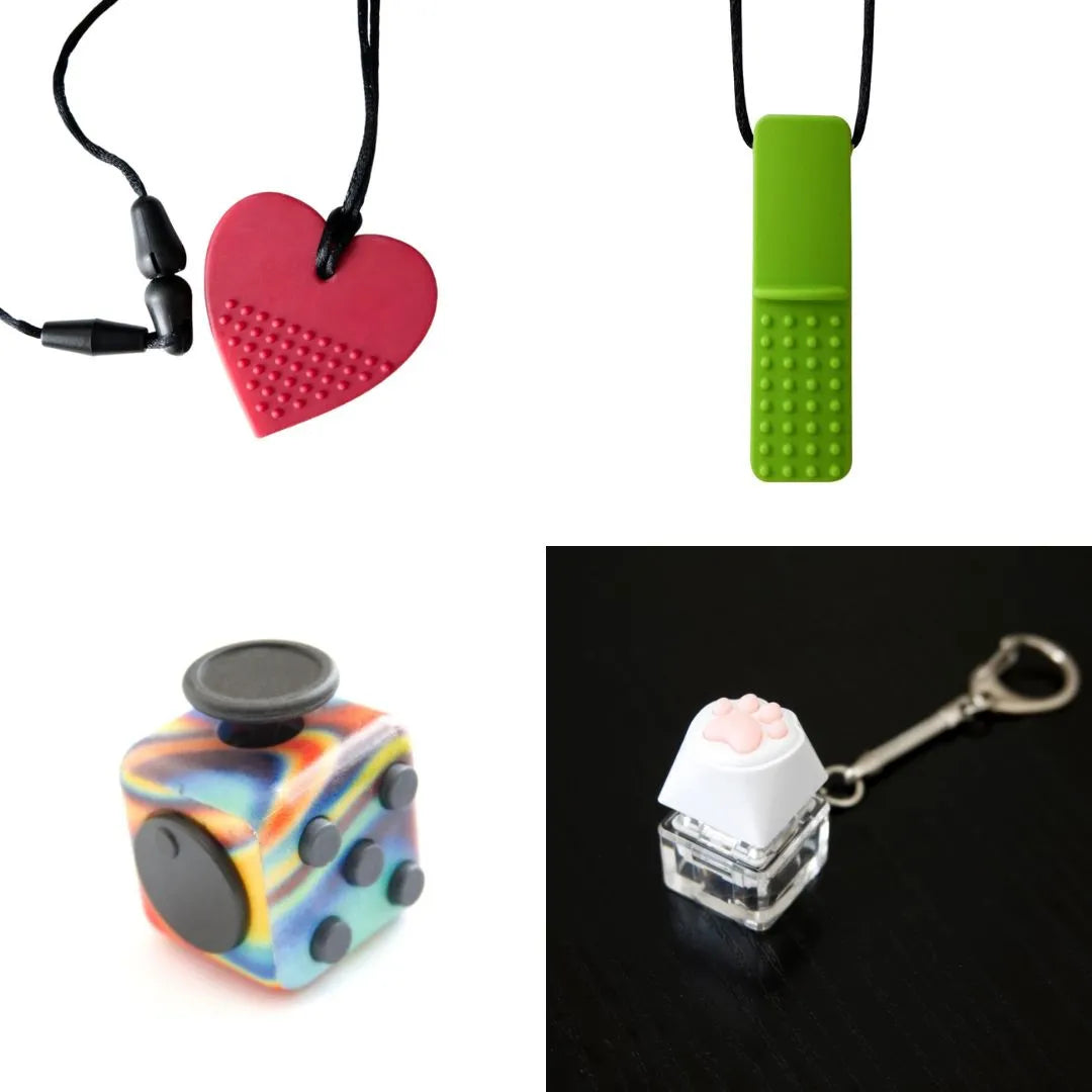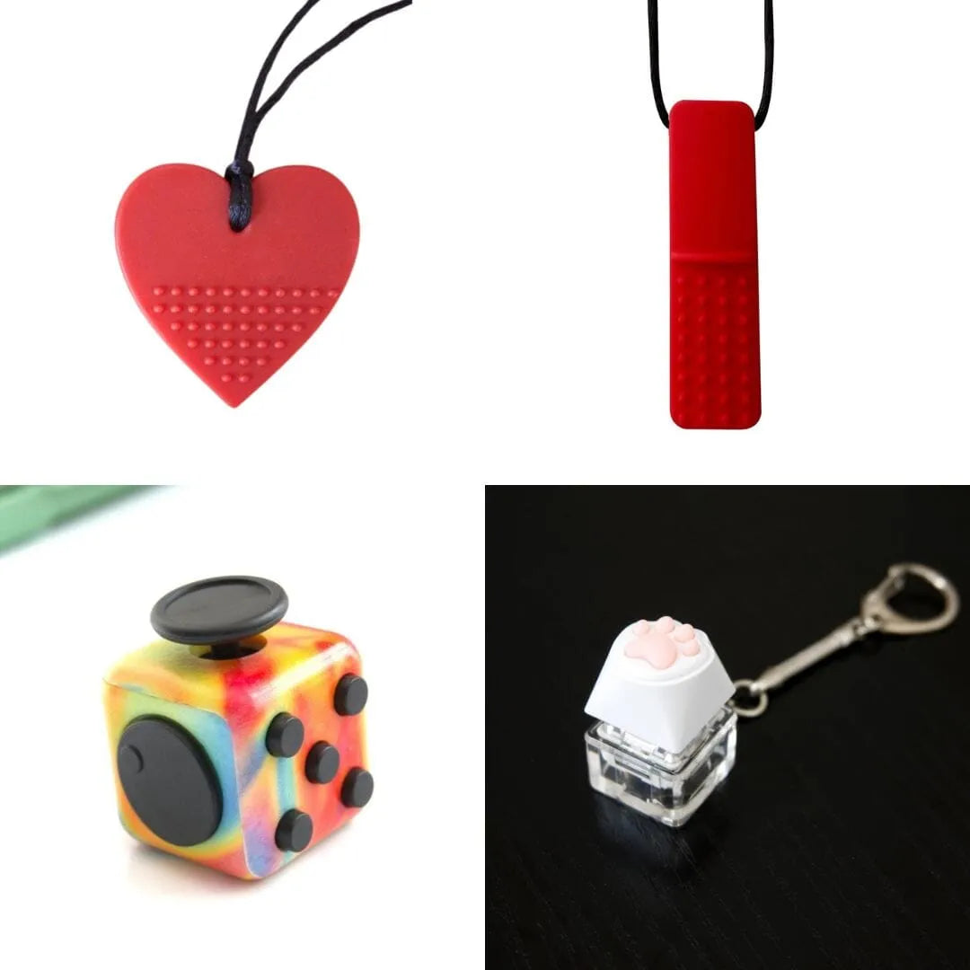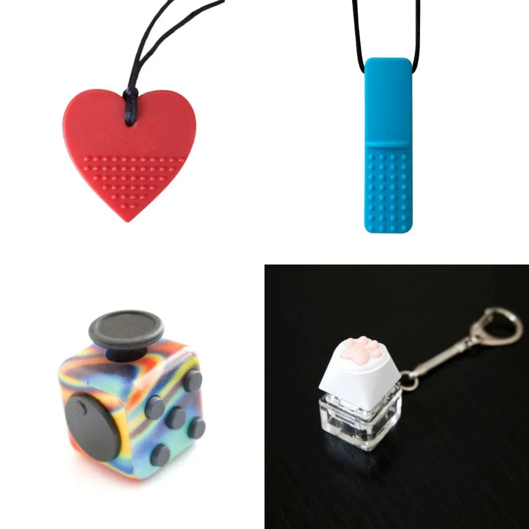 It also features the Push Button Fidget Cube and Paw Keyboard Fidget Keychain for added fidgeting fun.