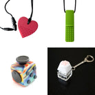 This bundle is specially designed for hard chewers and includes the durable Heart Chew Necklace by The Autistic Innovator and Bar Chew Necklace.