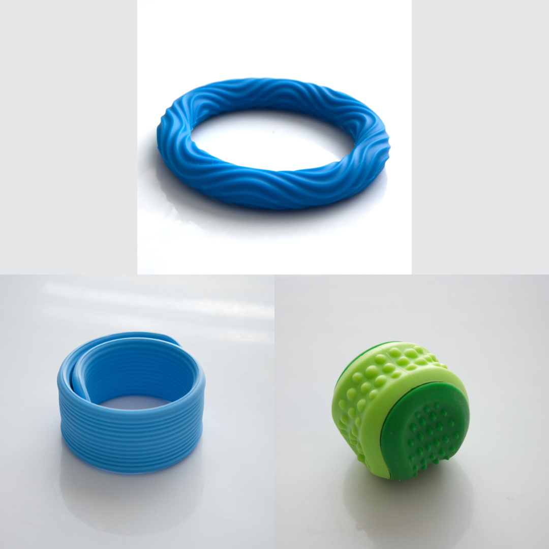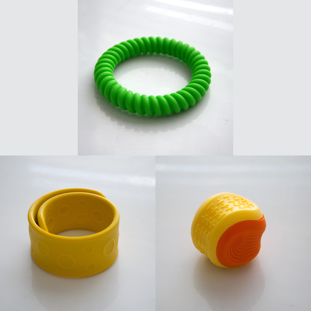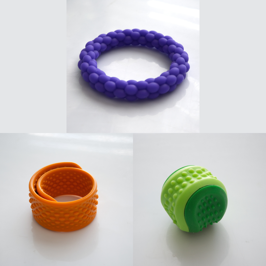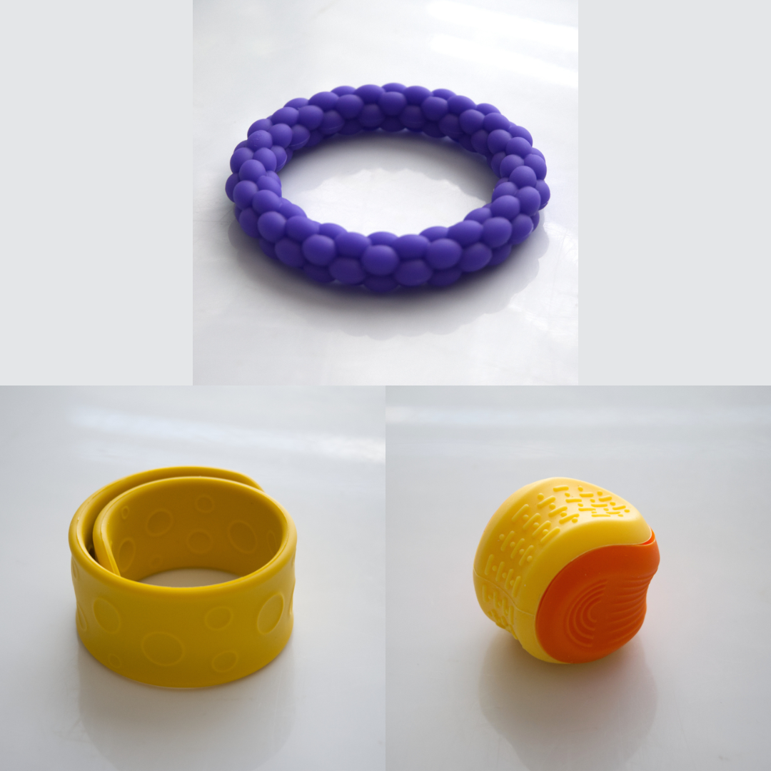 The Textured Sensory Bracelets come in 5 different options, and are more firm than flexible.