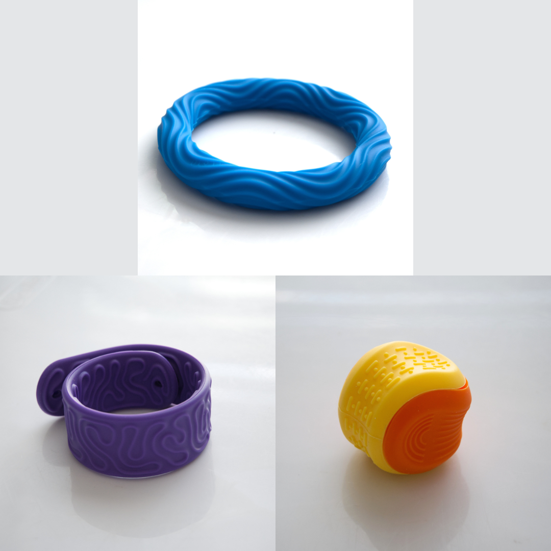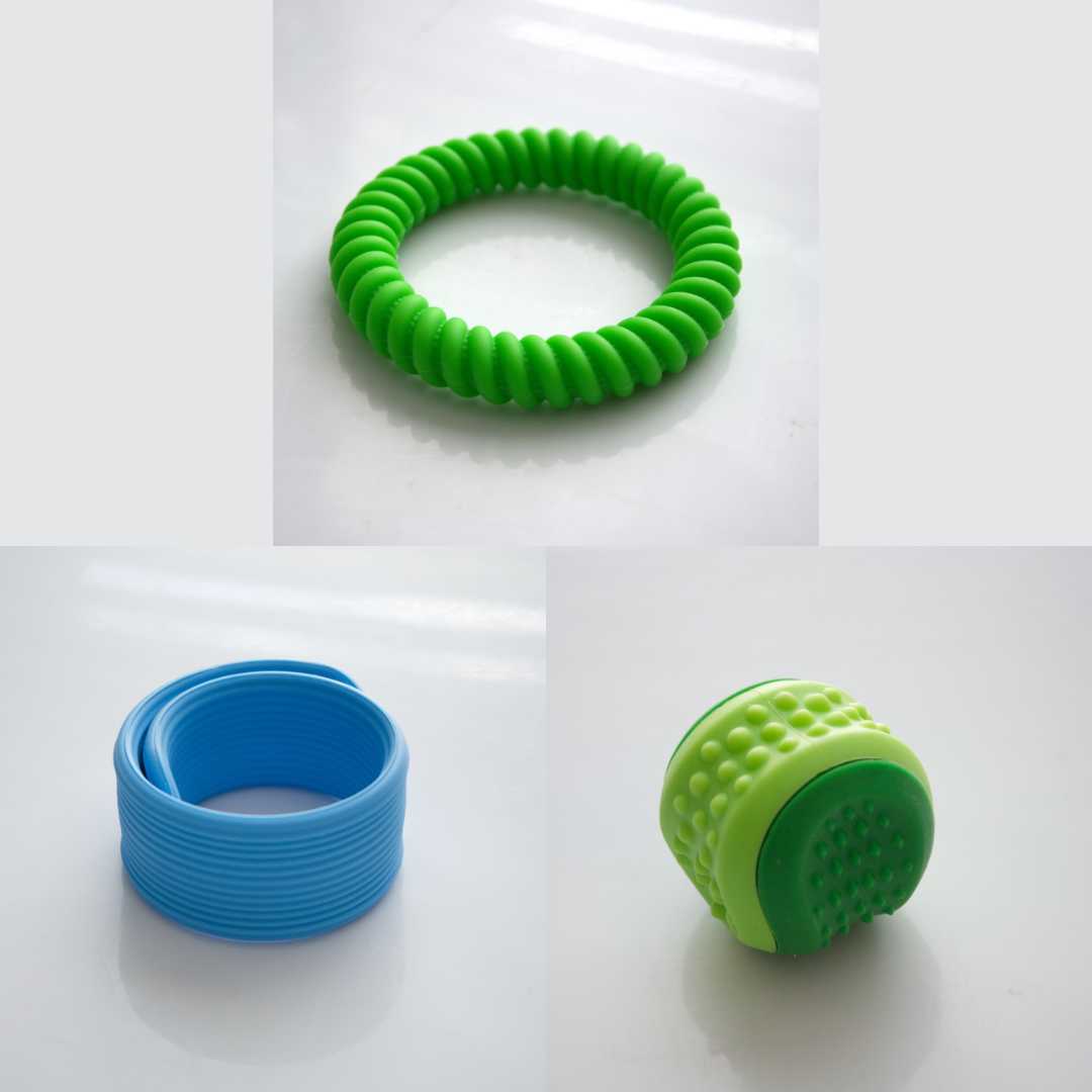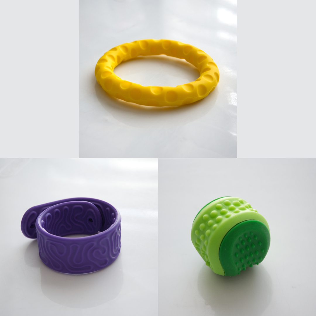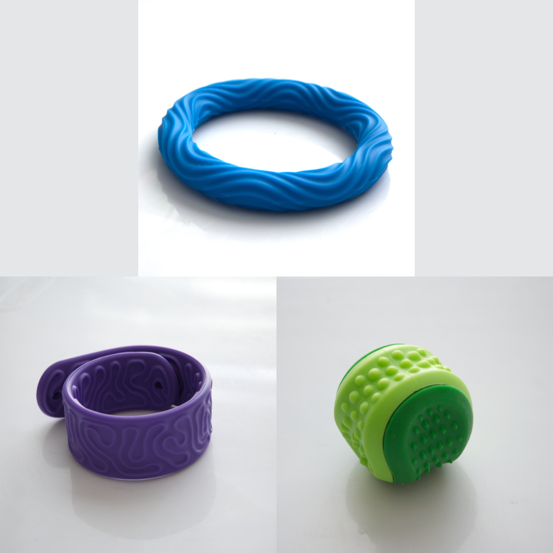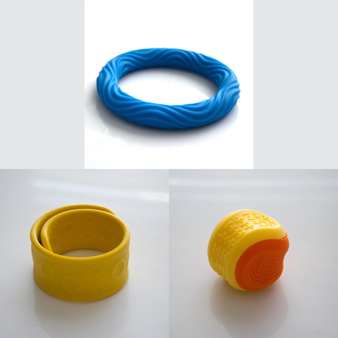 The Textured Sensory Bracelets come in 5 different options, and are more firm than flexible.