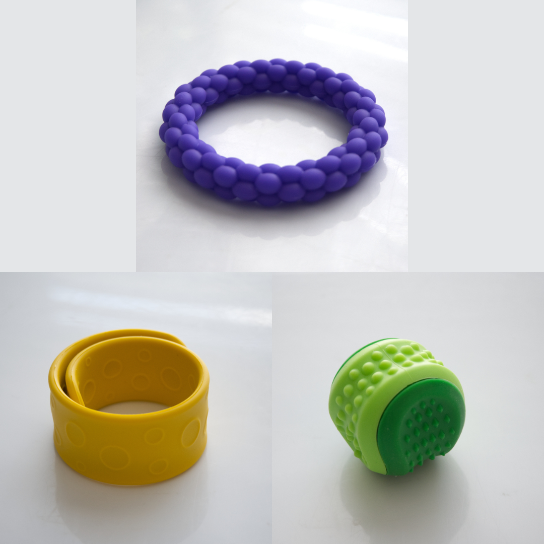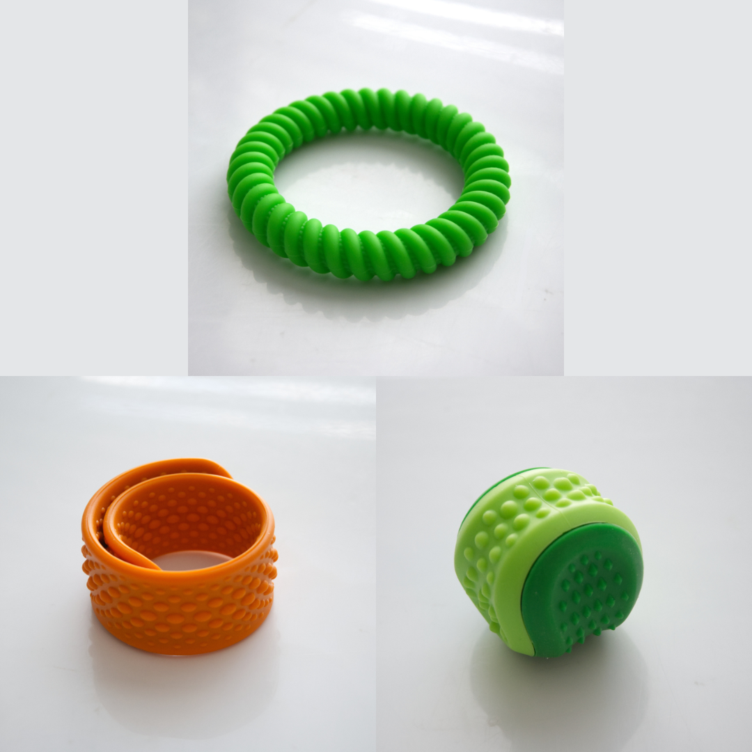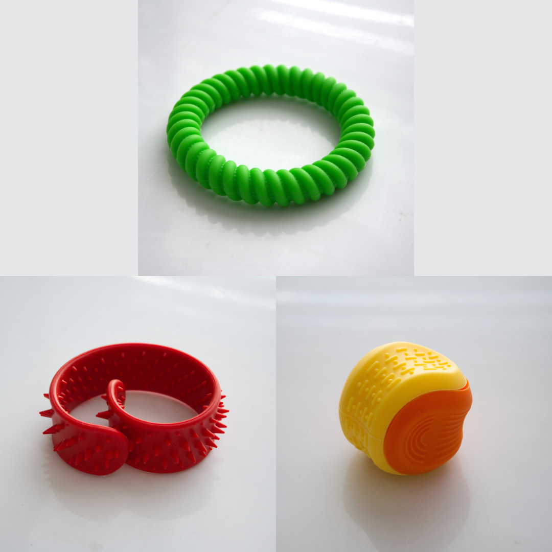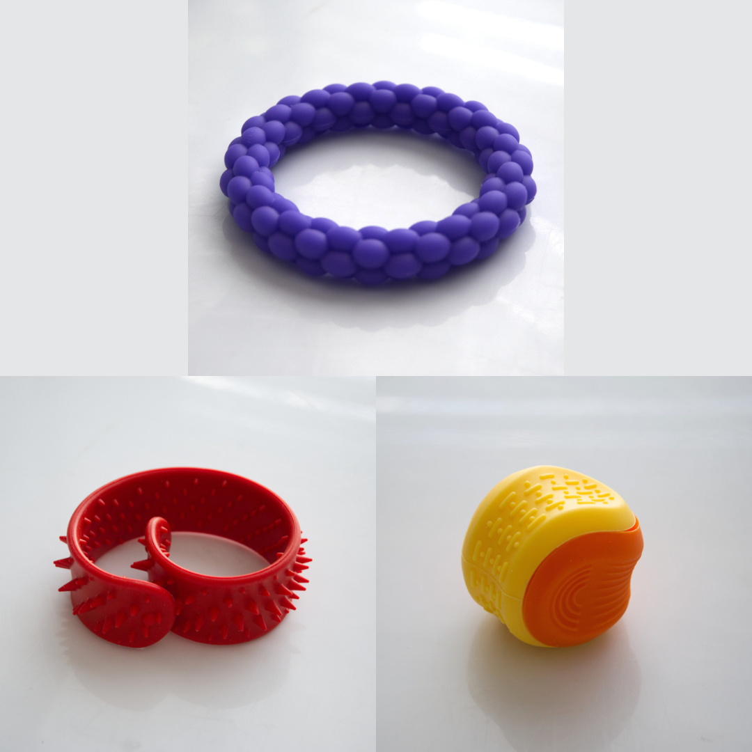 The Textured Sensory Bracelets come in 5 different options, and are more firm than flexible.