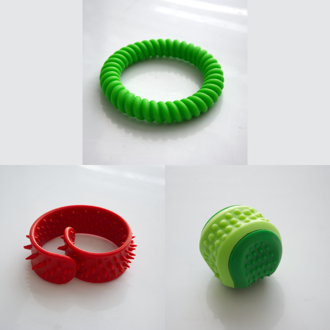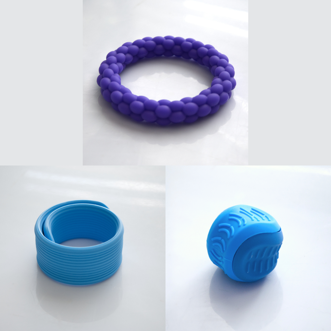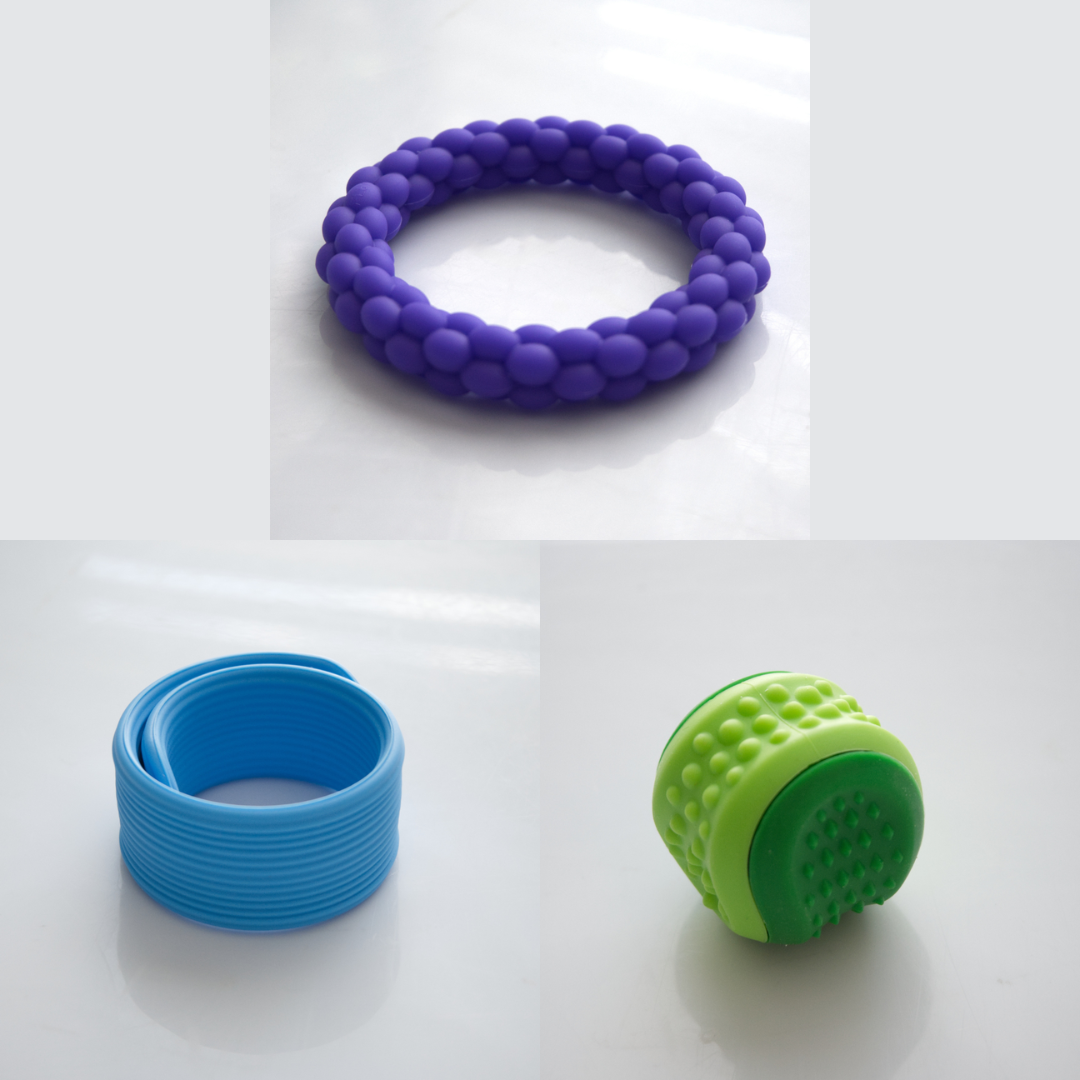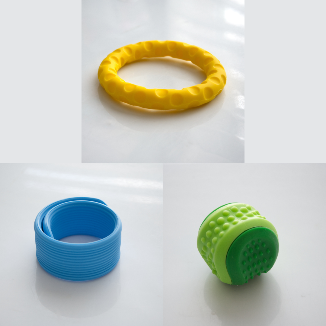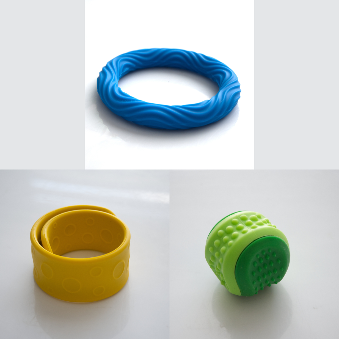 The Textured Sensory Bracelets come in 5 different options, and are more firm than flexible.