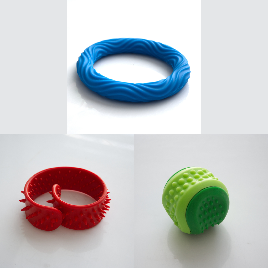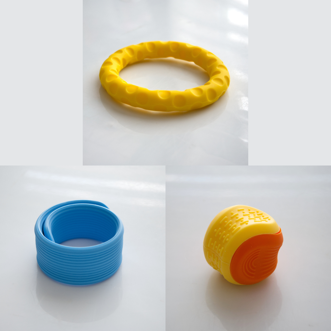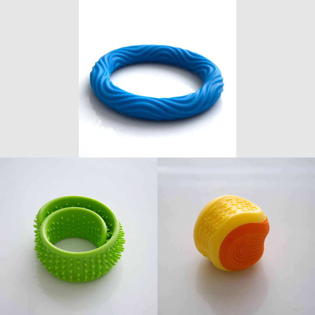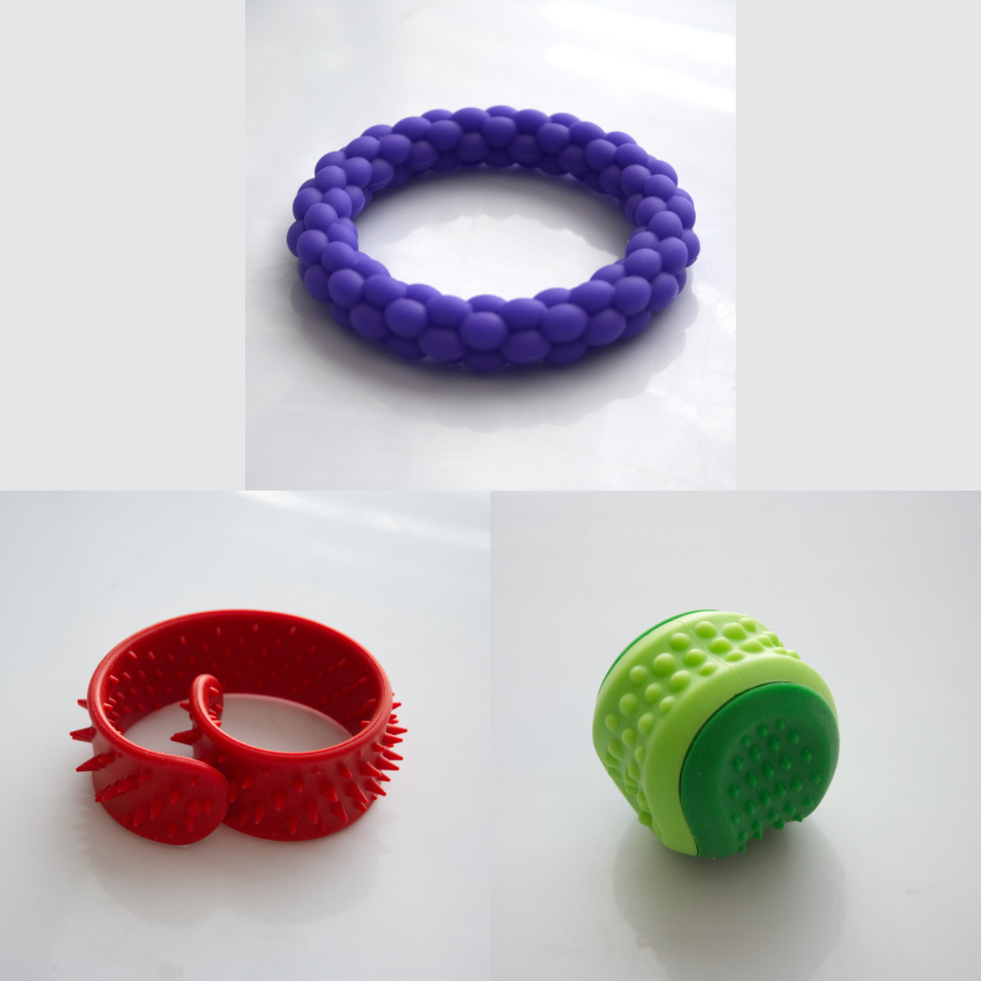 The Textured Sensory Bracelets come in 5 different options, and are more firm than flexible.