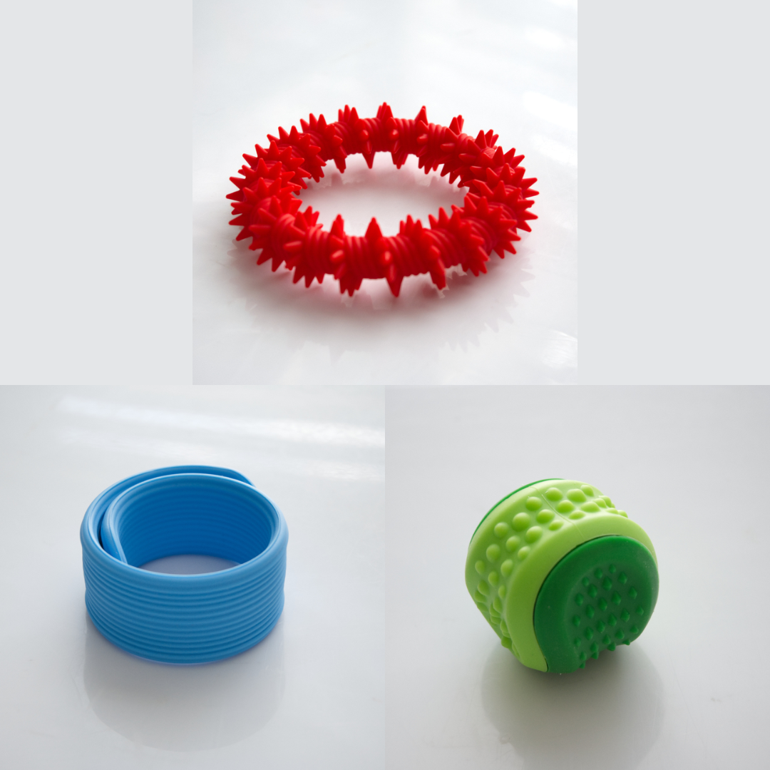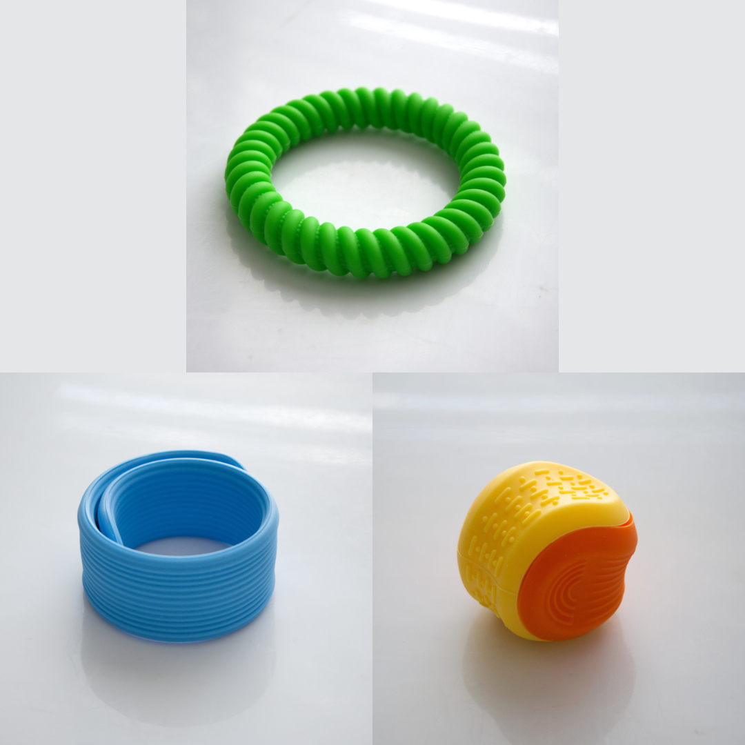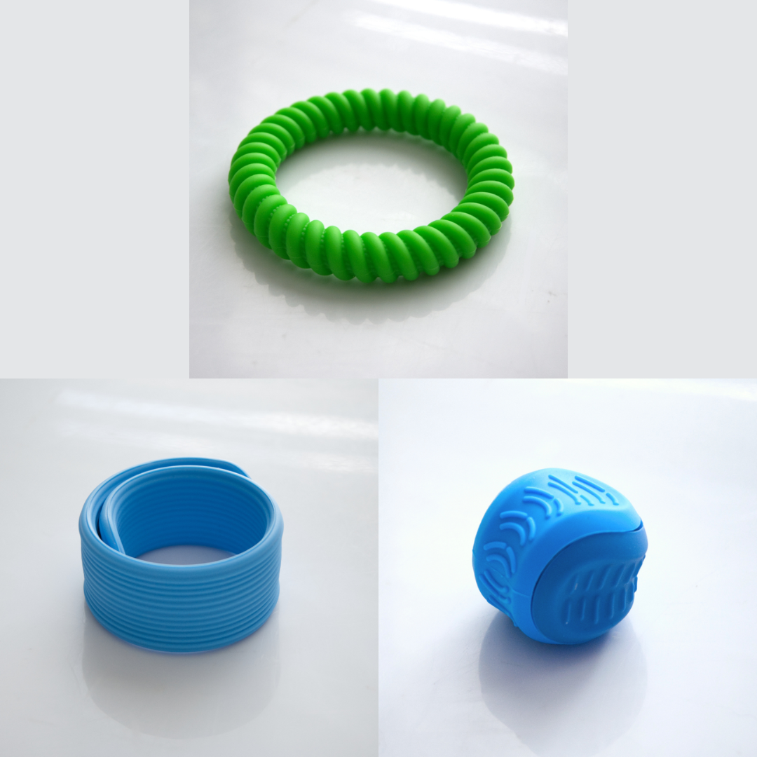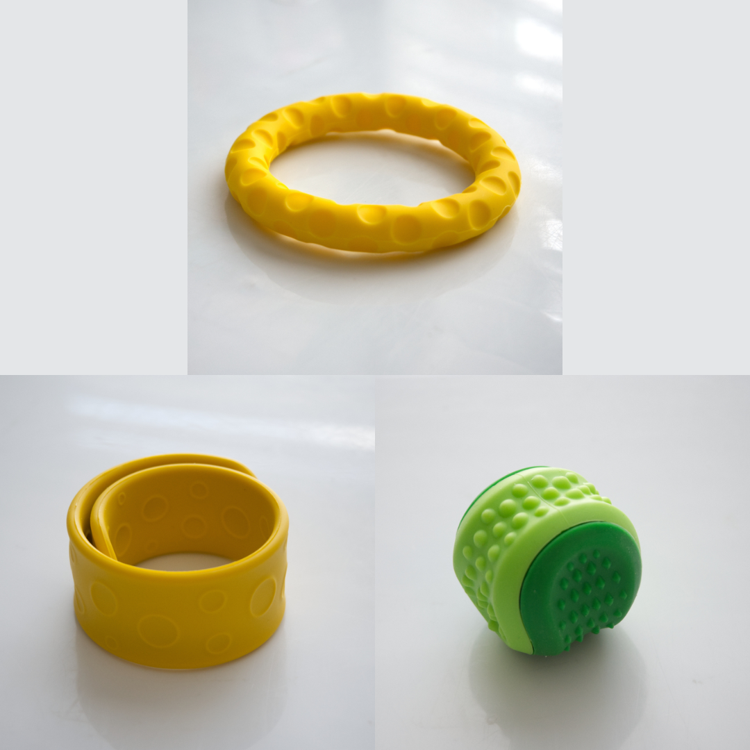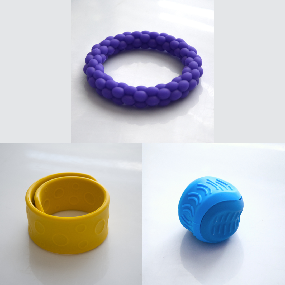 The Textured Sensory Bracelets come in 5 different options, and are more firm than flexible.