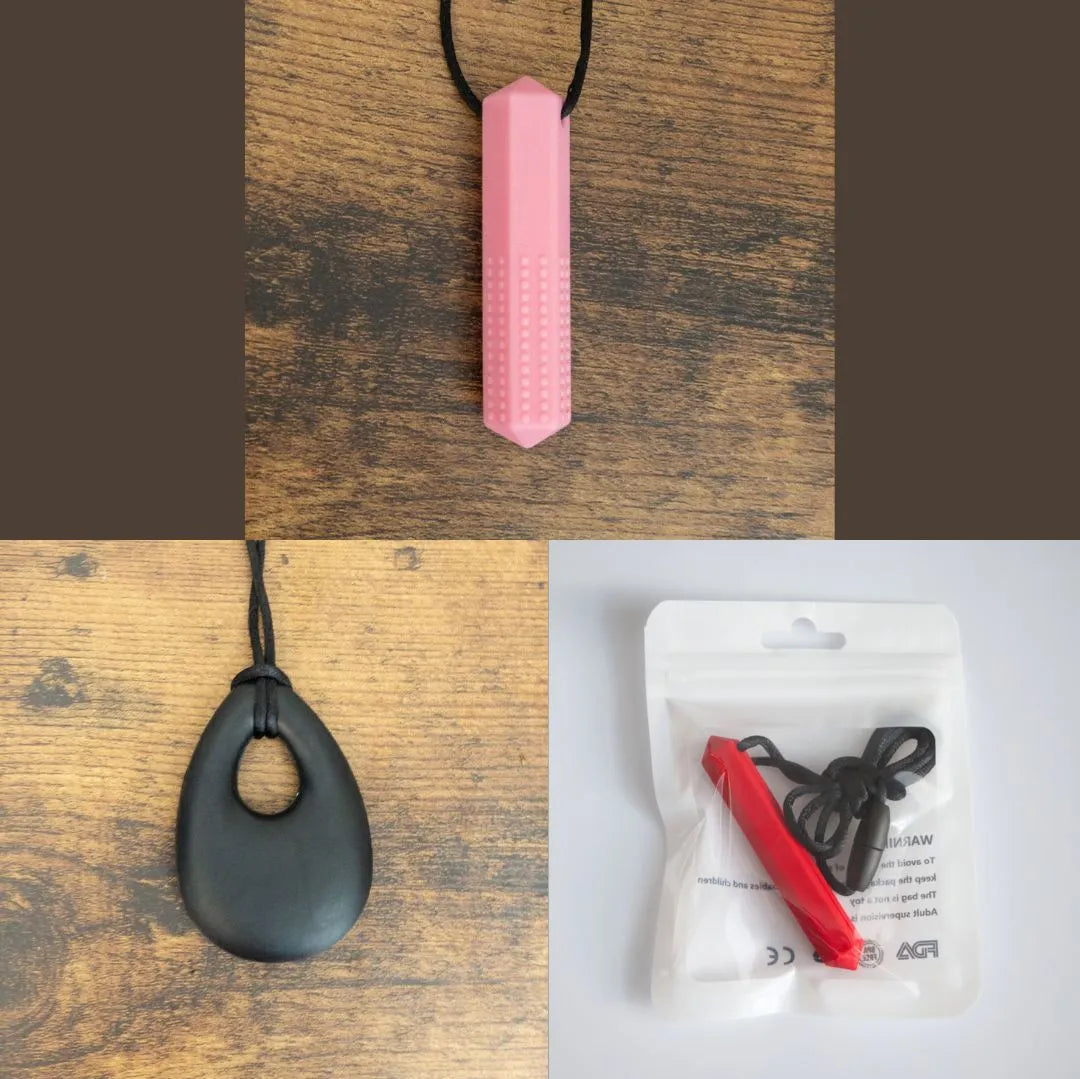 This collection includes durable sensory stim toys, chew necklaces, comforting plushies, and stim jewelry.