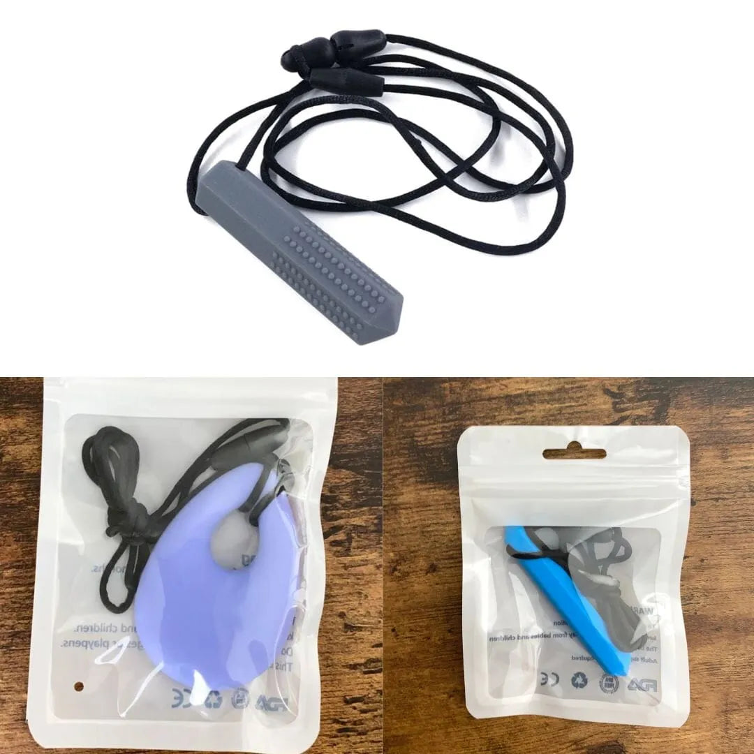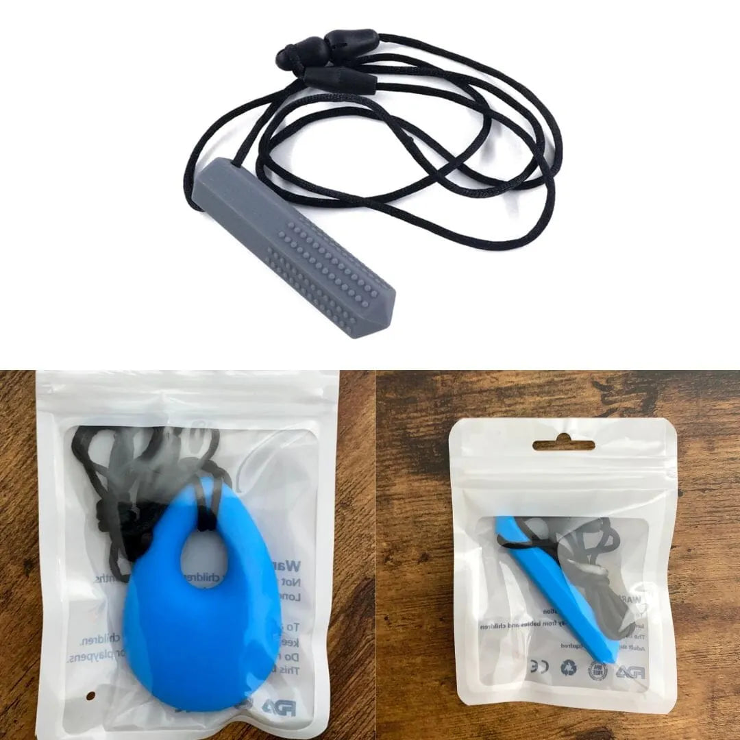Every chew necklace we sell is personally tested for quality and durability. For a complete guide on material safety and what dangerous chewelry to avoid, please read our Chew Necklace Safety Guide.