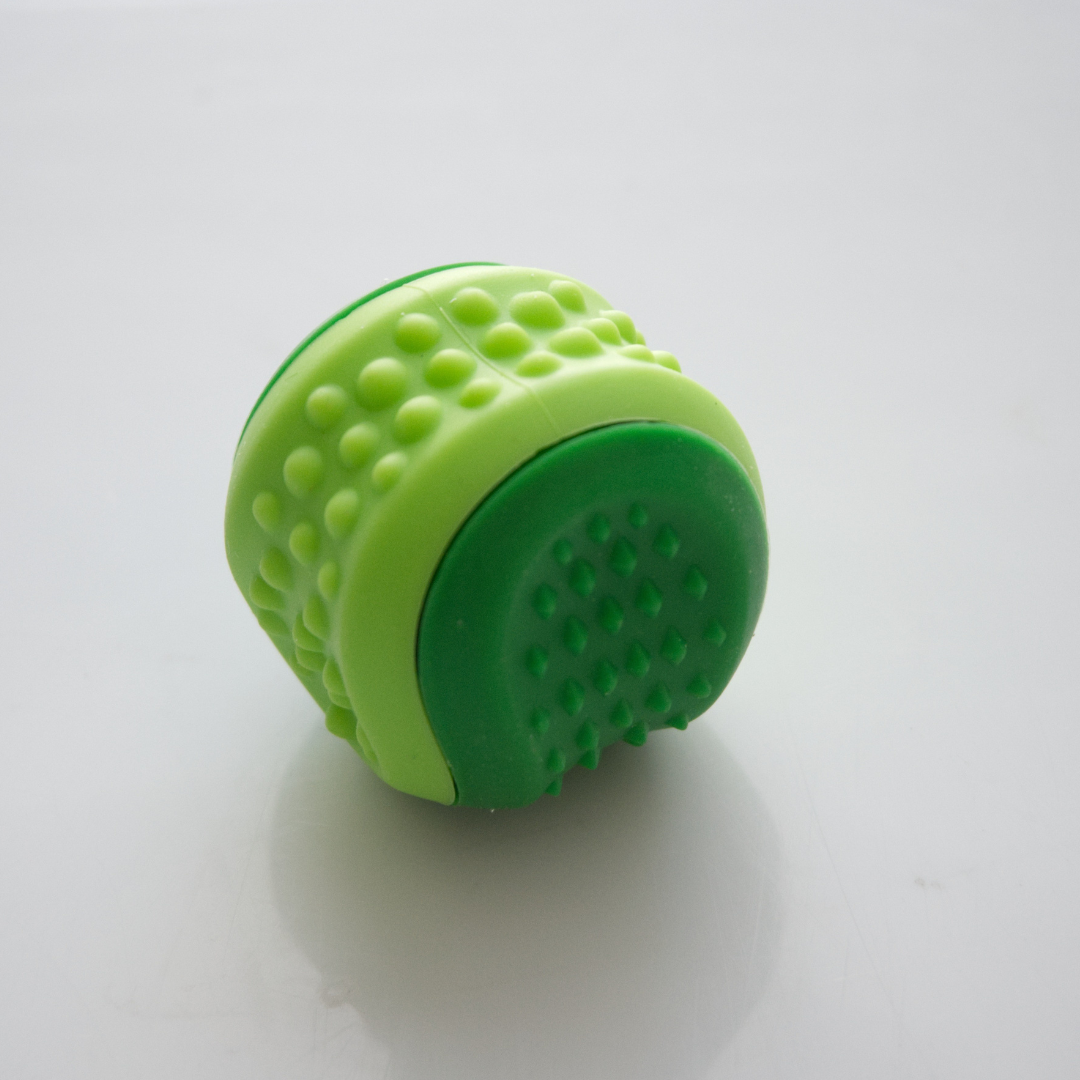 The Bubbles and Spikes Texture has a firm bumpy texture on the light green side and a smooth feeling spikes texture.